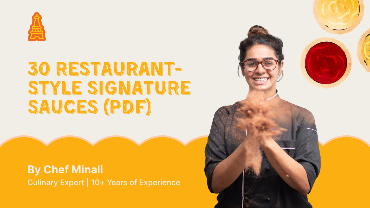 This guide teaches you 30 essential sauces inspired by professional kitchens, covering Indian, Continental, Asian and fusion styles — all simplified for easy preparation at home.