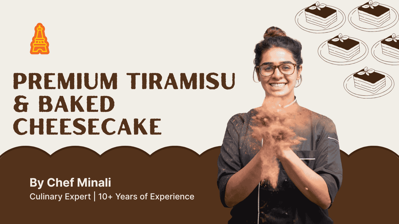 🎂 Master two of the most loved European desserts — recreated the Chef Minali way! Learn the techniques to make silky-smooth tiramisu and creamy cheesecakes with healthier, whole wheat, and eggless twists — right from your home kitchen.